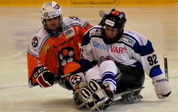Sledge hokejisté Sportovního klubu vozíčkářů Sharks vycestovali ke svému nejdelšímu výjezdu a přiváží si zpět tři body. V rámci 4. kola střelecky excelovali na ledě Studénky a i bez potrestaného kapitána Bergera zvítězili 14:0, když se o rovnou polovinu branek postaral Jiří Forgo (na snímku s číslem 92). Zápas ve Zlíně už tak idylicky neproběhl. Ačkoliv Žraloci po dvě třetiny herně dominovali, díky rapidně snížené produktivitě prohráli s vedoucím celkem i druhé vzájemné utkání sezóny, tentokrát 1:3.